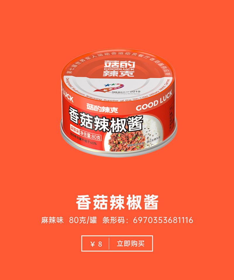 GOOD LUCK mushroom hot sauce, which means deliciousness and good luck made from mushrooms and chili peppers, is made with high-quality ingredients and carefully crafted. It has a unique flavor and taste, fragrant but not greasy, spicy but not dry. It can be added to steamed buns, mixed with rice, noodles, or used as a dipping sauce. It is a common side dish in life.