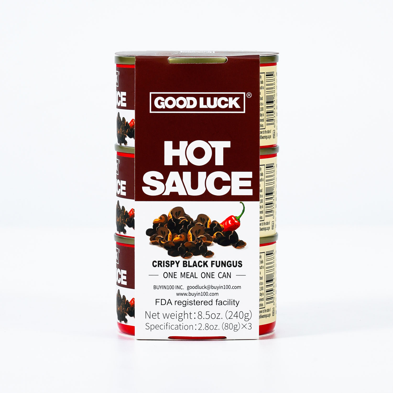 GOOD LUCK HOT SAUCE CRISPY BLACK FUNGUS - (Box of 6 cans) GOOD LUCK HOT SAUCE CRISPY BLACK FUNGUS - (Box of 6 cans)